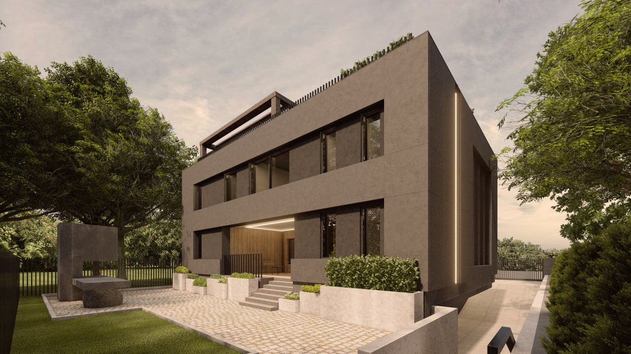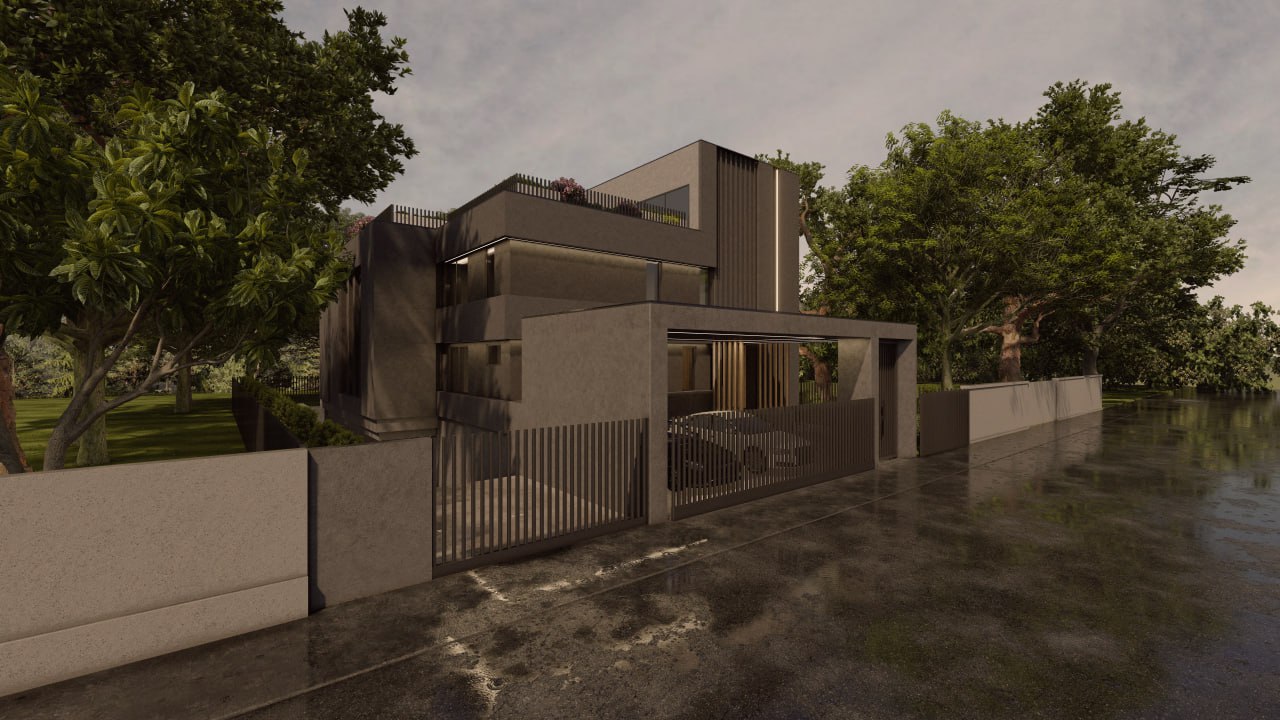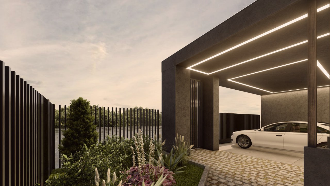 В доме предусмотрено 5 блок-спален с индивидуальными санузлами и просторными гардеробными, изолированная кухня и столовая-гостиная с эффектным вторым светом, создающим ощущение простора и уюта. Предусмотрен также отдельный кабинет для работы или личного уединения. На крыше расположена уютная зона отдыха и спортзал. Для транспорта запланированы гостевая крытая парковка на переднем дворе и крытая парковка для хозяйского транспорта под домом. На заднем дворе есть удобная терраса. Все технические помещения грамотно интегрированы в планировку, обеспечивая удобство и порядок. Дом строится из монолитного железобетона, что гарантирует надежность и долговечность конструкции. Современные системы отопления и вентиляции обеспечивают оптимальный микроклимат в любое время года. Этот проект сочетает в себе стиль, комфорт и передовые инженерные решения для вашей идеальной жизни